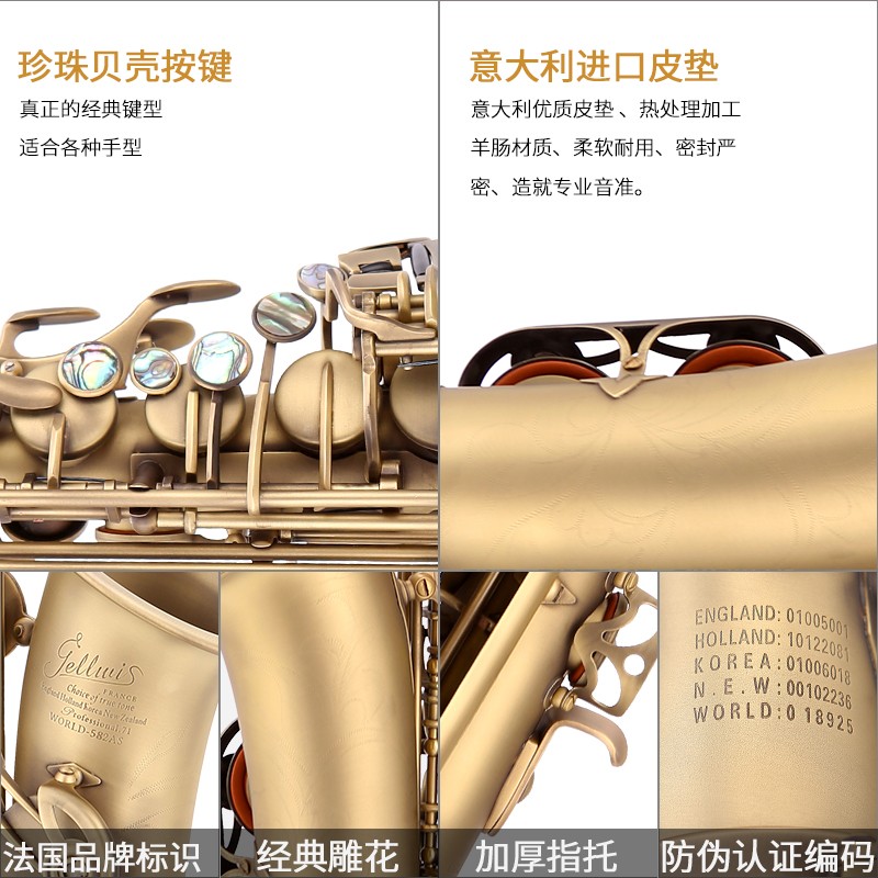 仿古青銅薩克斯表面為復(fù)古的顏色,低調(diào)而穩(wěn)重,易保養(yǎng),不喜歡特別亮薩克斯的薩友推薦選擇。